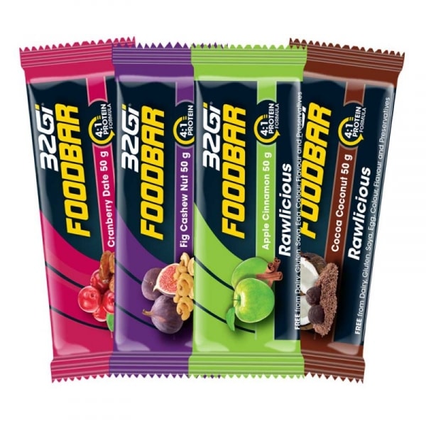 חטיפי האנרגיה הטבעוני של 32GI הינם סדרת חטיפי אנרגיה והתאוששות בריאים ומרוכזים אשר עשויים מחומרים טבעיים בלבד ומצוינים לשימוש כ-ארוחה לדרך, בתחילת אימון, בזמן האימון ובסופו.