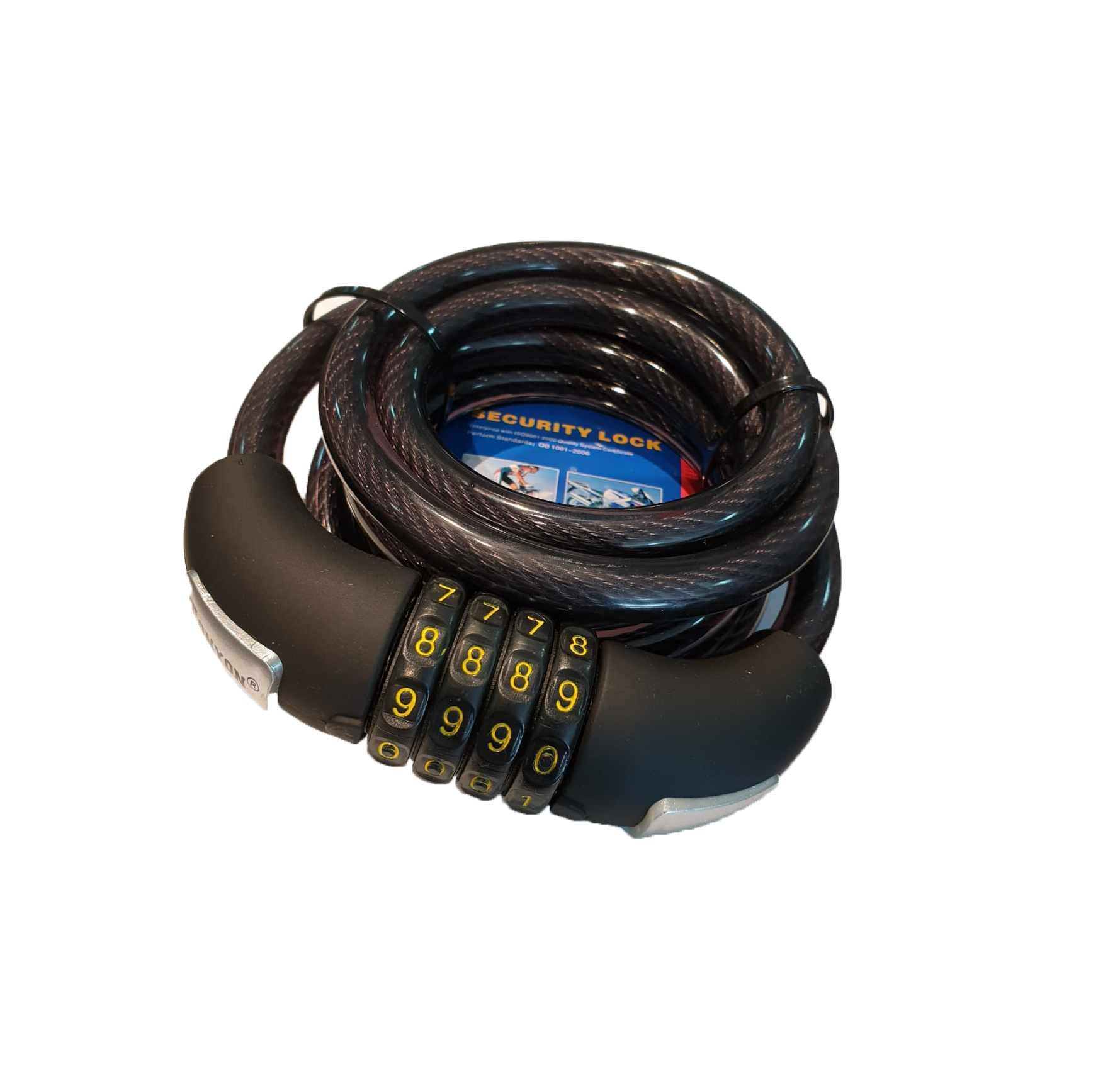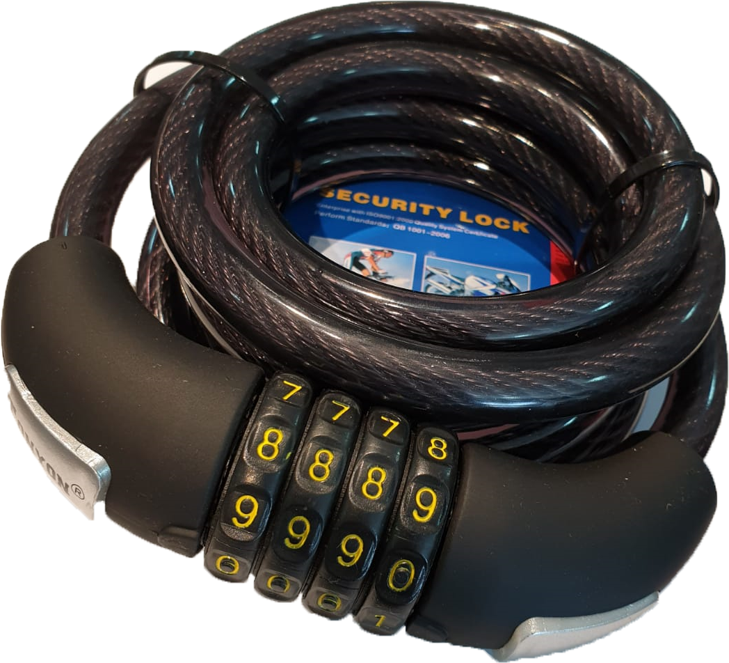 מנעול מקצועי לנעילת האופניים | מתאים לקשירת שני הגלגלים לעמוד. אורך – כ 150 ס"מ | עובי הכבל – 12 מ"מ